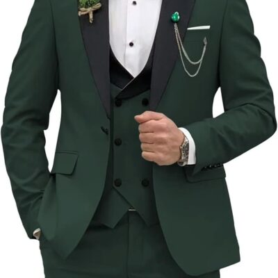 Men’s3 Piece Suit Slim Fit Tuxedo for Homecoming Wedding Prom Blazer Jacket Vest Pants with Tie Set