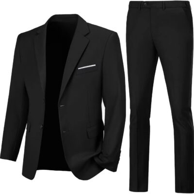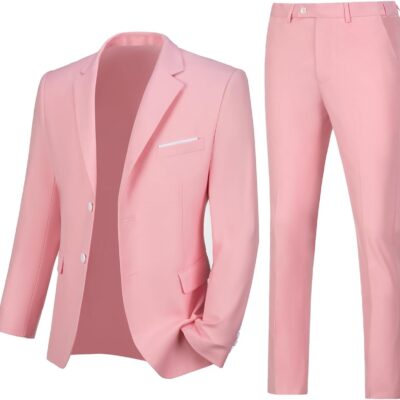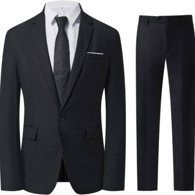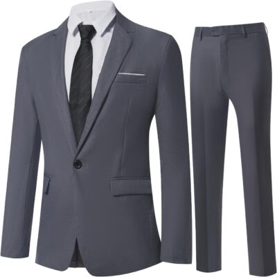 Men’s Suits 2 Piece Slim Fit One Button Dress Suit Jacket Blazer Pants Set for Wedding Business