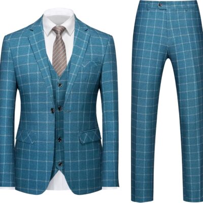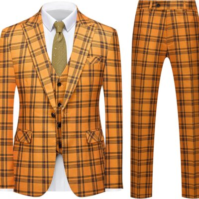 Men’s3-Piece Slim Fit Plaid Suit – Blazer, Vest, and Pants Set for Wedding, Prom, and Business