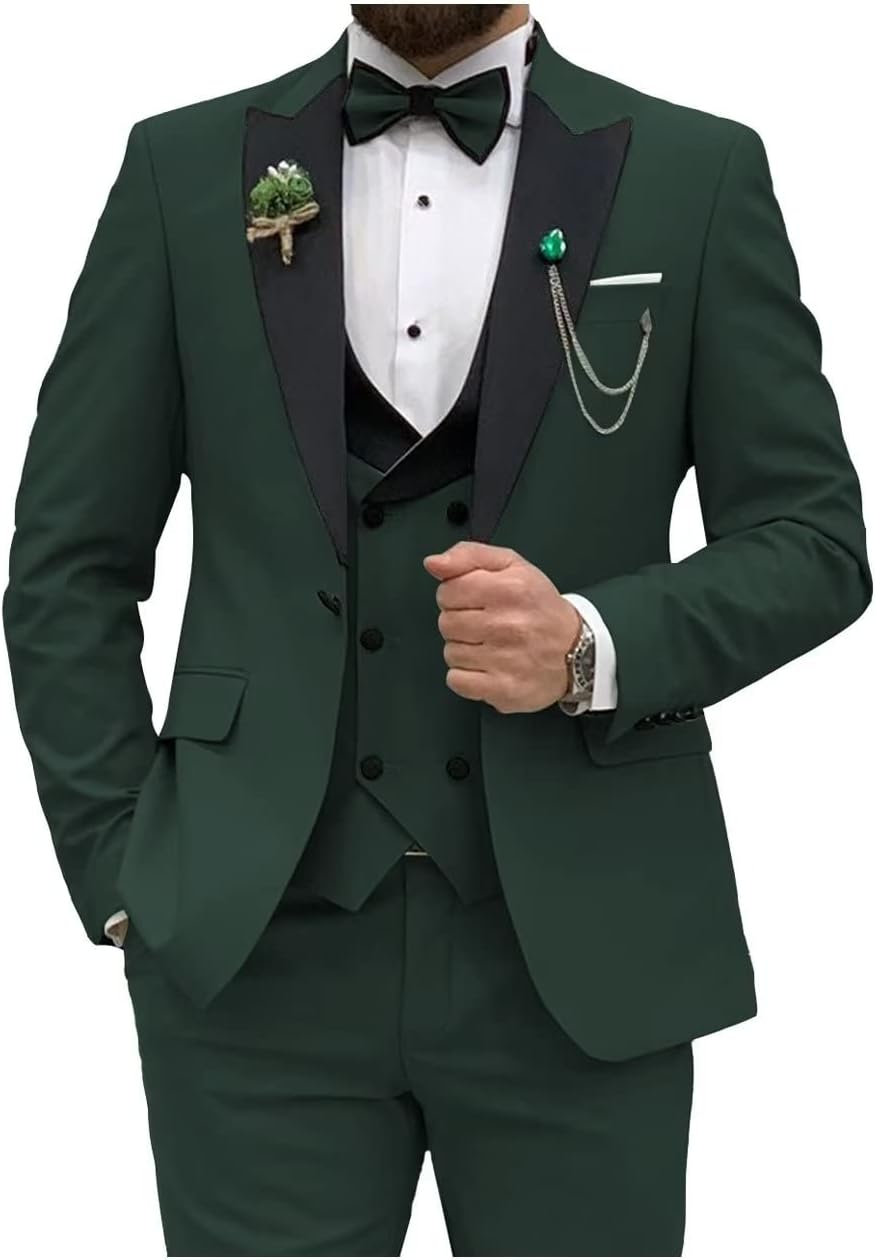 Men Slim Fit Suits 3 Piece Double Breasted Suit Men Wedding Prom Party Business Blazer Vest and Pants with Tie