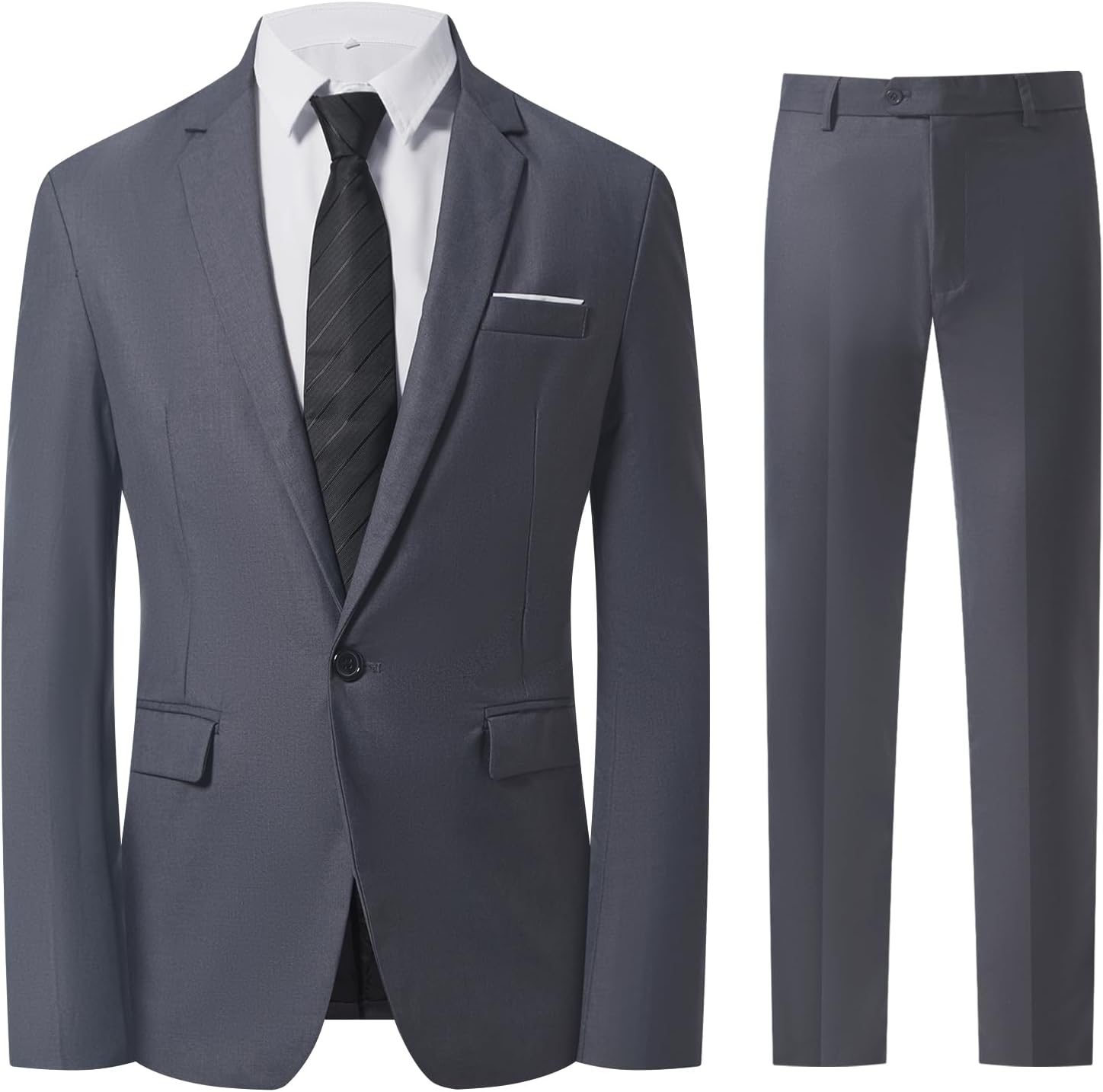Men’s Suits 2 Piece Slim Fit One Button Dress Suit Jacket Blazer Pants Set for Wedding Business